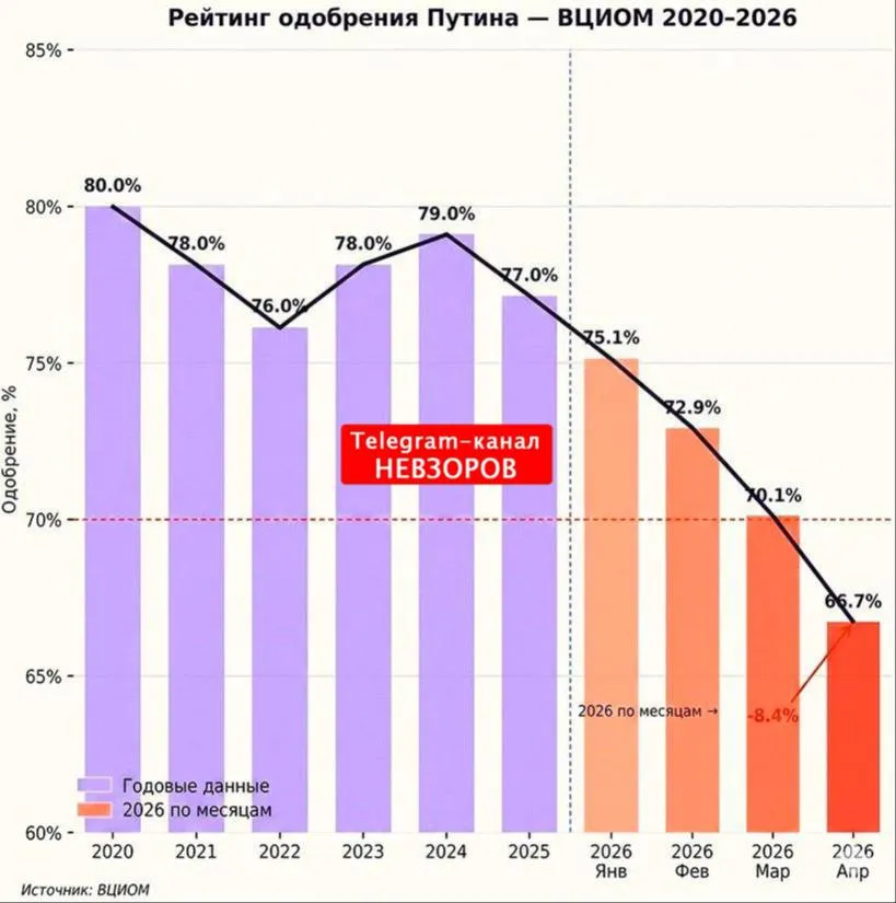 Так, все правда. Навіть "ВЦИОМ" крізь зуби підтвердив, що рейтинг путіна поповз вниз.